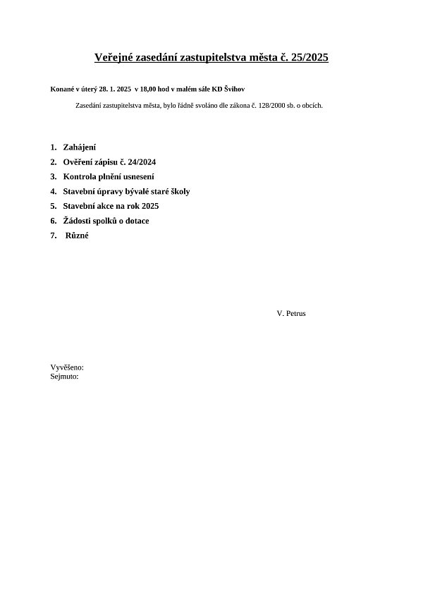 Pozvánka na zasedání zastupitelstva konané dne 28.01.2025