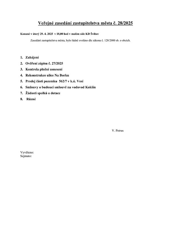 Pozvánka na zasedání zastupitelstva č. 28/2025